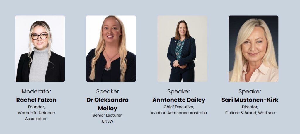 The panel will explore how leading organisations are moving beyond commitment statements to deliver measurable outcomes that support women’s participation and leadership. From recruitment through to retention, culture through to capability, the discussion will unpack what genuine progress looks like – and why collaboration across Defence, industry, and government is critical to securing the future workforce.